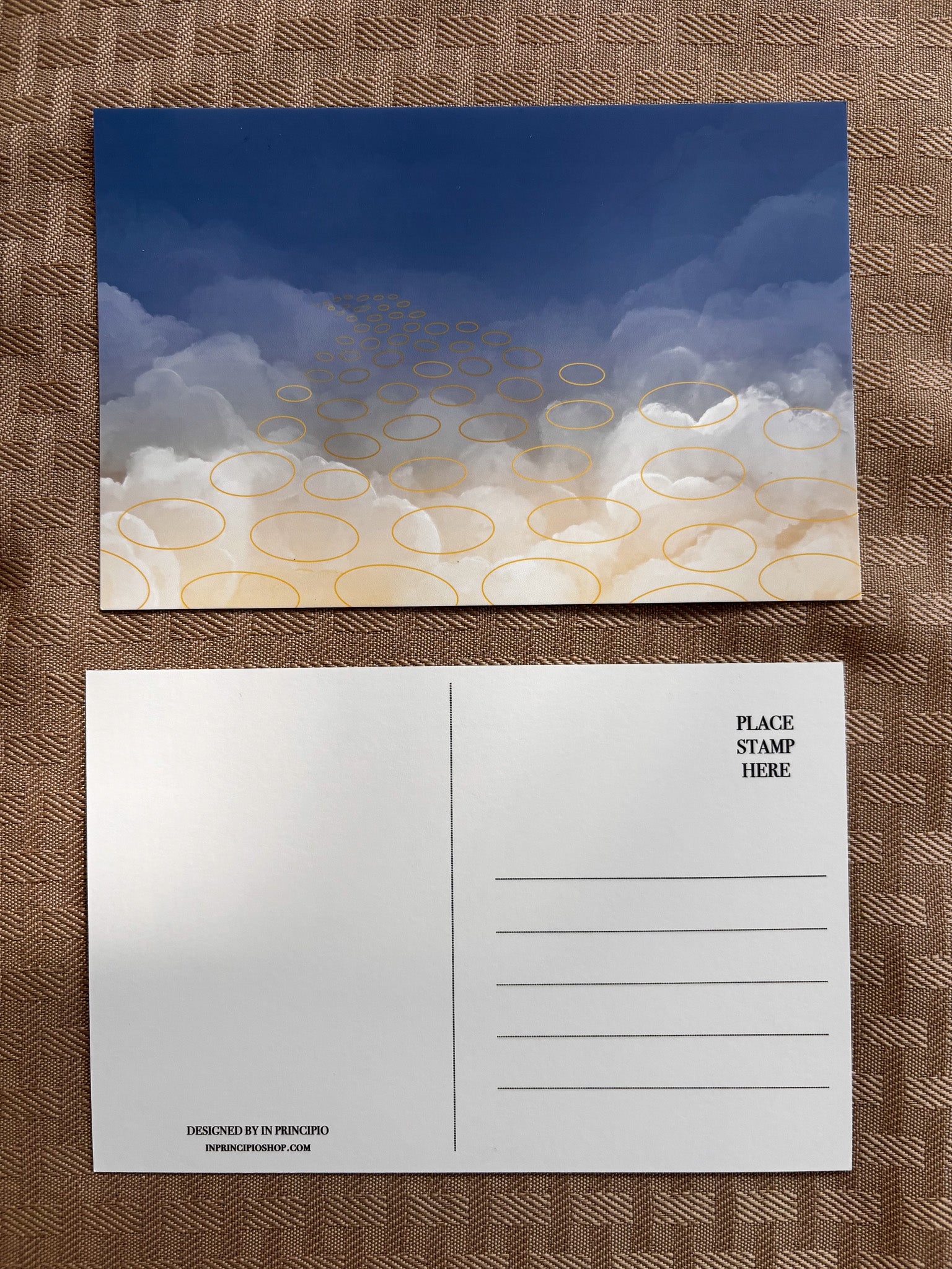This postcard draws inspiration from Hebrews 12:1 to show the multitude of saints in heaven ready to intercede and pray for us!