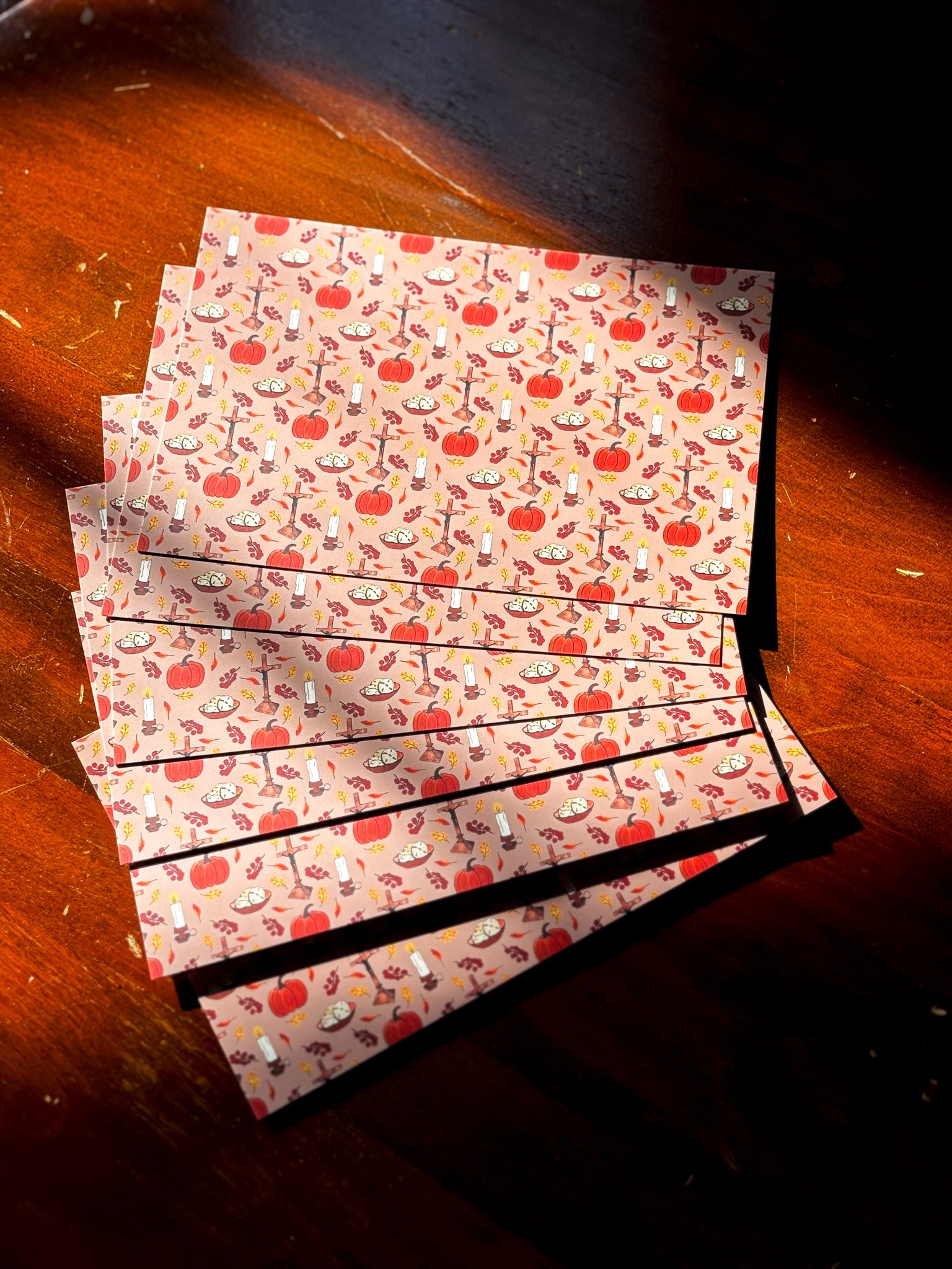 Fall into the Allhallowtide season with this cozy pattern postcard!